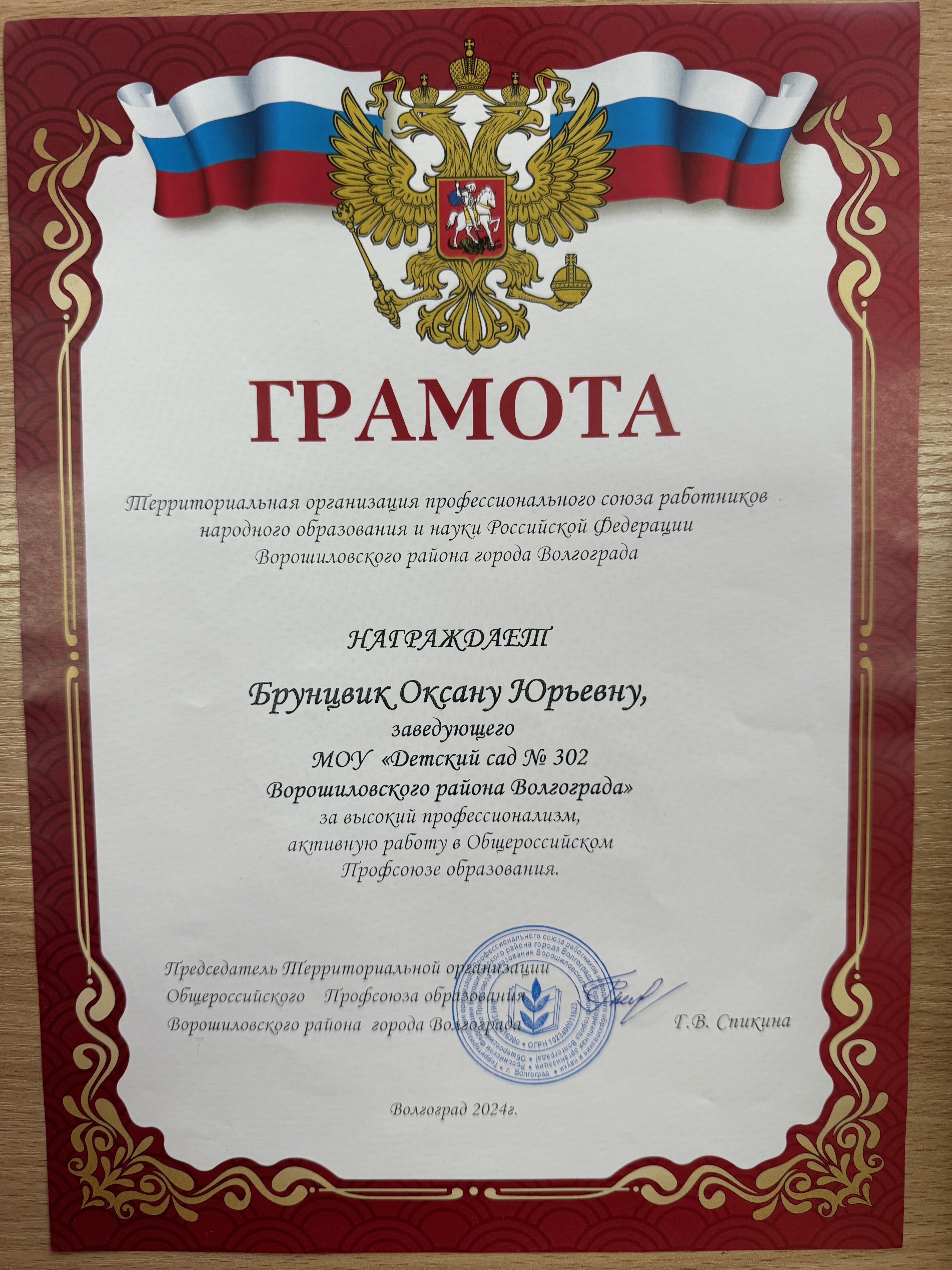 = Председатель профсоюзного комитета - Бирук Наталья Владимировна